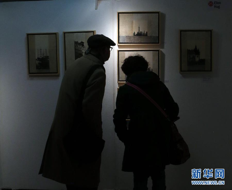 12月2日,人们在德国法兰克福第92届“艺术品”圣诞市场上欣赏艺术家的作品。