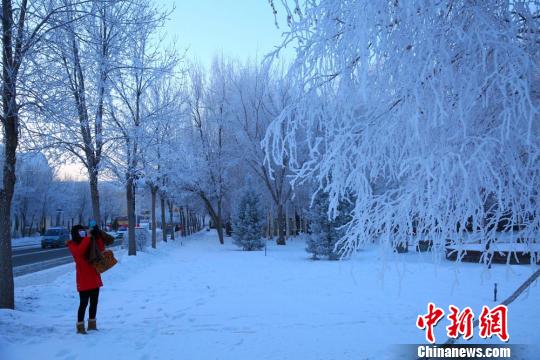 新疆阿勒泰地区气象台2日发布大风蓝色预警信号,预计2日深夜到3日夜间,西部有5级左右偏东风,闹海风区及风口一带7-8级,阿勒泰哈巴河县的最低气温也降至零下16度。12月2日,受降温天气影响,新疆哈巴河县出现绵延数公里的雾凇景观,给白雪皑皑的边城大地,又披上了一层晶莹洁净的白纱,成为西北边城哈巴河县一道靓丽风景。
