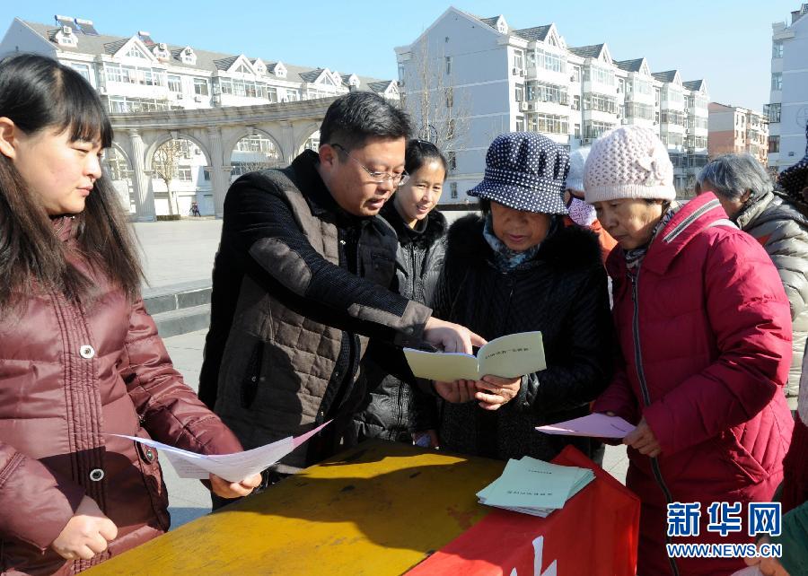12月4日,河北霸州城区办事处工作人员向居民发放普法宣传资料。当日是我国首个国家宪法日,河北省霸州市组织30多个单位走上街头、走进社区,通过资料发放、咨询解答等多种形式,向群众进行法律宣传,提高群众知法、懂法、守法意识。新华社记者 李晓果 摄