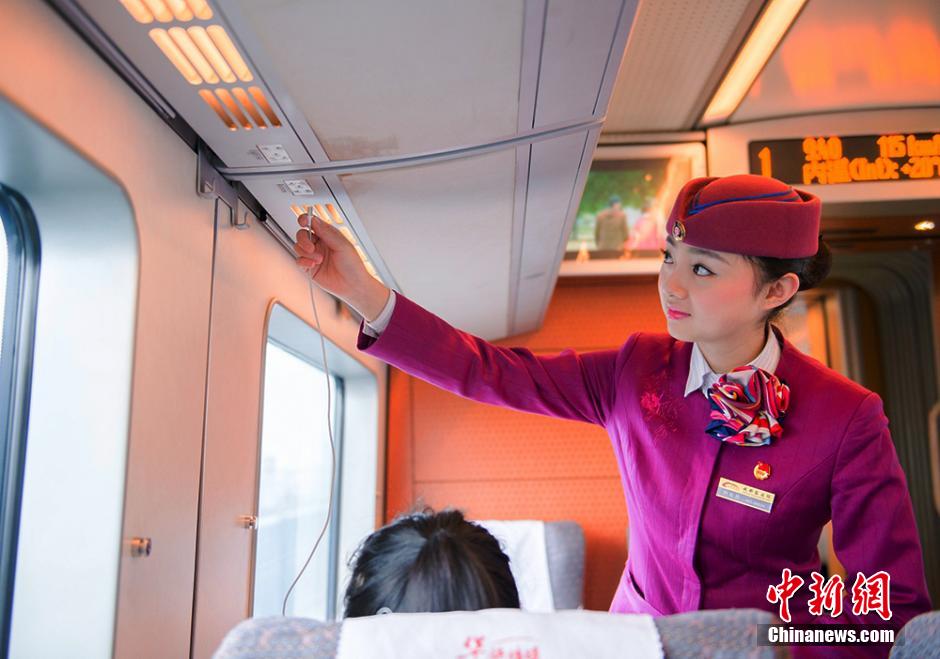 在成绵乐动车即将开行前,记者探访成绵乐首发备选乘务组里90后乘务员们,她们是一群活泼可爱的90后,生活中的她们自我、张扬,工作中的她们优雅、成熟,有着与年龄不相符的成熟。苏志刚 摄