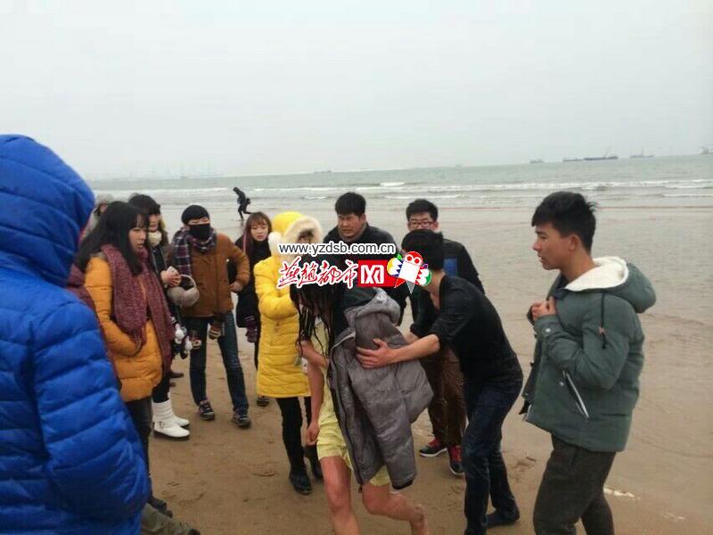 不久,李镇豆等同学赶到了黄衣女子的身旁,搀扶着她向岸边走去。“当时大家都很着急,直接就冲到海里救人,结果好几部手机都进了水,不能开机了。”陈学沛告诉记者,女子被救回岸上后,大家看到她只穿了件黄色连衣裙,有同学把防寒服给她披上,不过该女子披了一会就还给了同学,没说什么就与岸上的同伴汇合,披上同伴的衣服离开了。