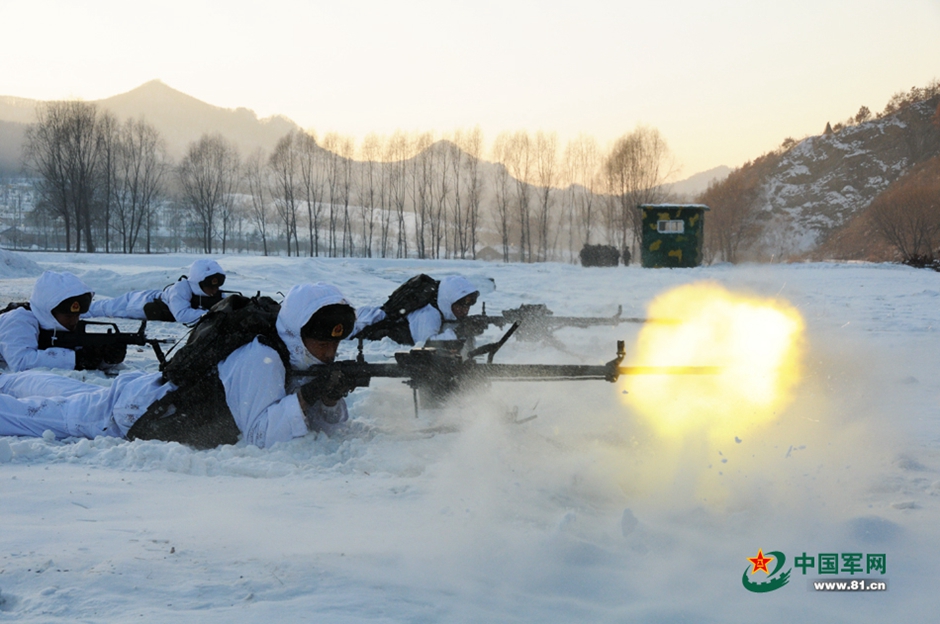 12月8日,沈阳军区某旅进行实弹射击训练。连日来,该旅利用冬季严寒特点,组织官兵接受实战化检验,提升官兵严寒条件下的作战本领。刘议闪摄影报道 图片来源:中国军网