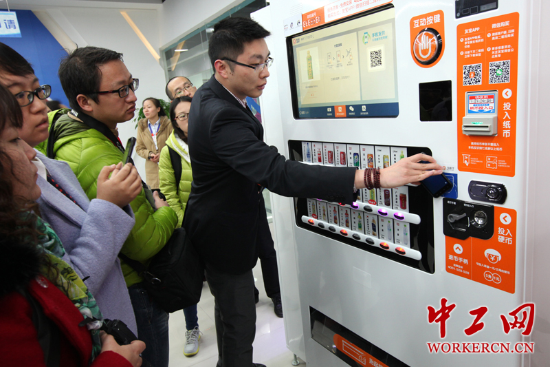 记者在南昌华南城大学生电商创业孵化基地体验“掌上科技”,通过手机扫描支付,“拒绝零钱交易”。