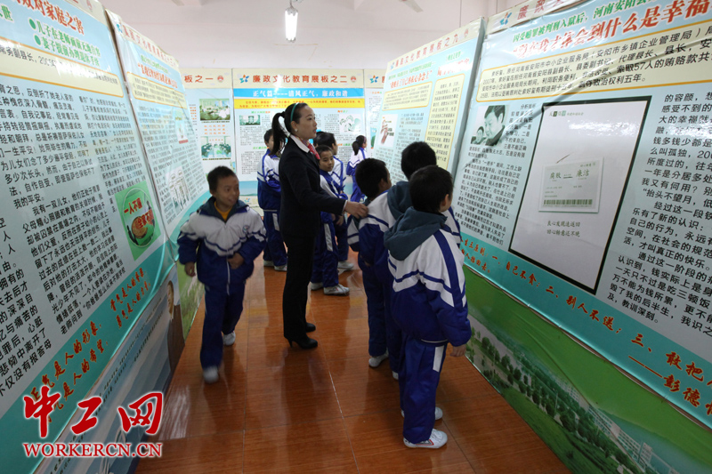 江西西山学校的孩子们在老师带领下在法制教育展厅学习。中工网记者 李雪峰摄