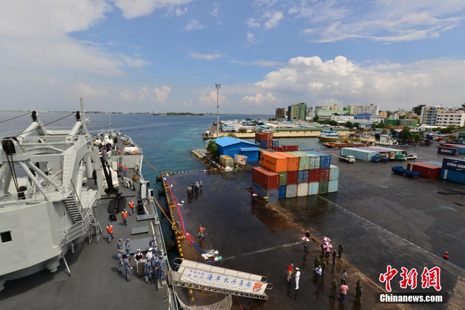 当地时间12月8日12时许,经过50多个小时的全速航行,赴马尔代夫执行紧急供水任务的中国海军长兴岛船停靠马首都马累港,开始实施供水作业。4日,马累唯一的海水淡化厂发生火灾,设备损毁,这个印度洋上的岛国首都迅速陷入淡水资源短缺危机中。据长兴岛船船长张鸽介绍,长兴岛船将为马累市供应600吨淡水,约需10余个小时可以供完。应马方要求,之后长兴岛船将在马累港外抛锚,利用船上装备的多套海水淡化装置制造淡水,每天生产淡化水70余吨,定期为马累市提供。这项行动将持续到马累市供水系统恢复正常工作以后。图为中国海军长兴岛船靠泊马累港。中新社发 都晓坤 摄