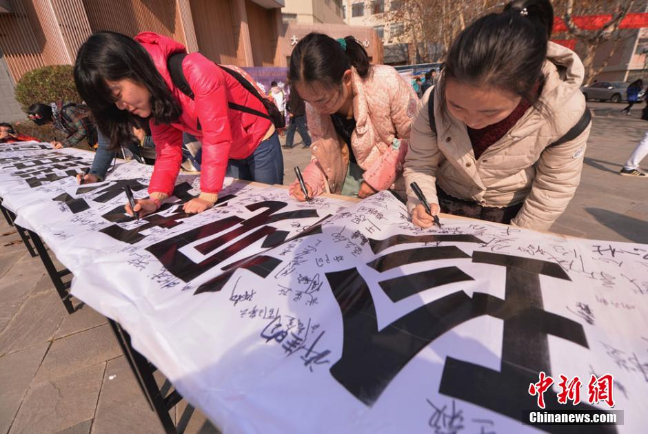 12月9日,南京农业大学两千多位师生在卫岗校区举行“千人共制公祭菊”活动,通过自制白色菊花和千纸鹤,将其组成“12.13”字样,并在爱国主题标语上签上自己的名字,牢记历史,祭奠哀思。王爽 摄