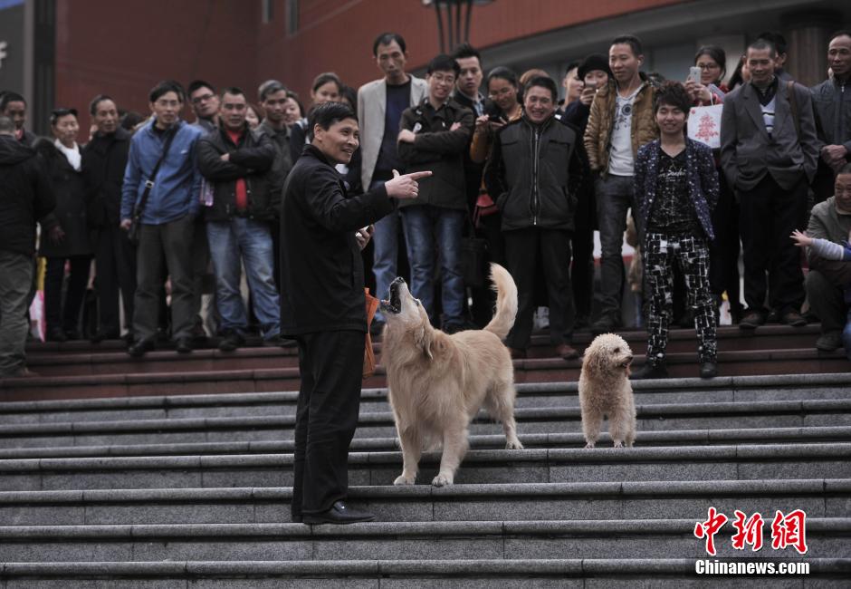近日,重庆街头一市民用手比划数字让自己的狗狗报数、算数,狗狗通过自己叫声的次数来答题,吸引了不少路人围观。据狗狗的主人介绍,这条狗狗名叫熊熊,今年9岁,熊熊小时候他们并没有刻意地去训练它,一次偶然的机会,才知道原来自己的狗狗还会数数认字。后来他开始去发掘熊熊的“本领”,他发现,除了成语算数,熊熊还知道自己生活在哪个国家哪个城市,它都能通过叫声表达出来。陈超 摄