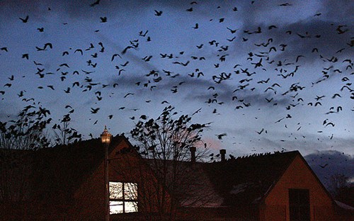 斯普林菲尔德小镇居民称,这些乌鸦不像电影中那样有攻击性,但它们的数量实在过多,经常栖息在树林、建筑物以及遮雨棚上。商店、公共图书馆以及餐馆等场所被迫制造噪音以吓跑乌鸦。此外,他们还利用激光指示器驱赶鸟群。