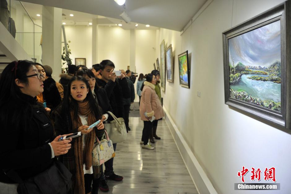 12月14日,油画展吸引参观者。当日,“乘Feng逐雪”——85后浪漫主义画家王梦雪油画作品展在成都武侯祠美术馆开展,此次油画展的素材多数取材于四川甘孜藏区、俄罗斯等地。据悉,成都女孩王梦雪出生于1986年,曾在俄罗斯圣彼得堡国立大学留学,同时在俄罗斯列宾美术学院梅尔尼杰夫工作室进修。回国后曾就职四川文艺出版社,现为四川当代油画院专职画家。中新社发 刘忠俊 摄