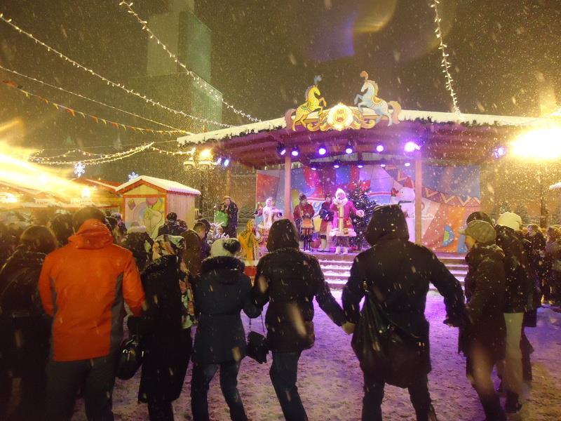 莫斯科红场古姆市集除了摊贩及游乐园,每晚都有杂耍班或传统音乐表演,现场民众随着音乐起舞,气氛欢乐 。