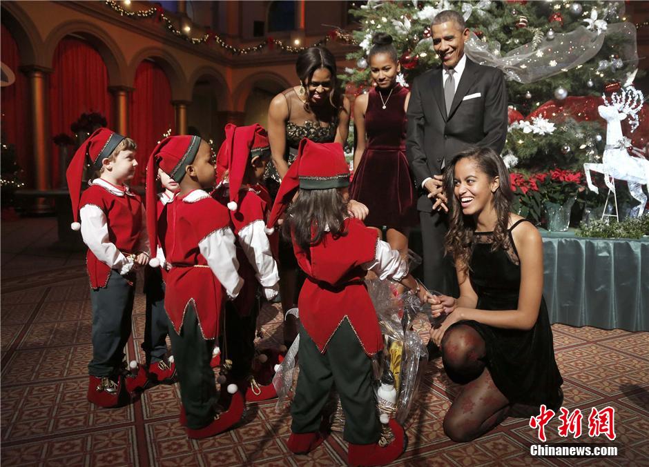 中新网12月15日电 据外媒报道,当地时间14日晚,美国总统奥巴马携妻女一家4口参加了在华盛顿举行的“华盛顿圣诞节”的演唱会电视直播活动。