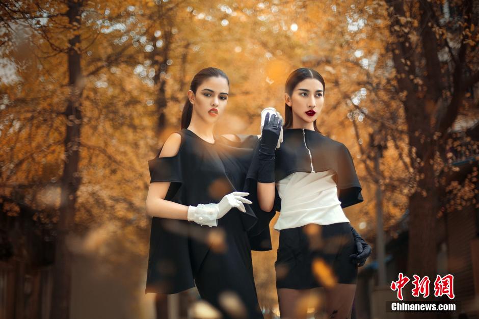 12月初是成都欣赏银杏的最佳时期。在武侯区锦绣巷,两名模特在纷飞飘落的金黄色银杏叶中拍摄高冷时尚大片,更显艳丽。钟欣 摄