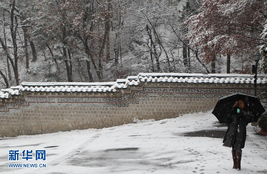 12月15日,在韩国首尔,游客在三清阁景区拍照留念。当日下午,首尔突降大雪,气温骤降。据韩国气象台预报,大雪降温天气还将持续。 新华社记者姚琪琳摄