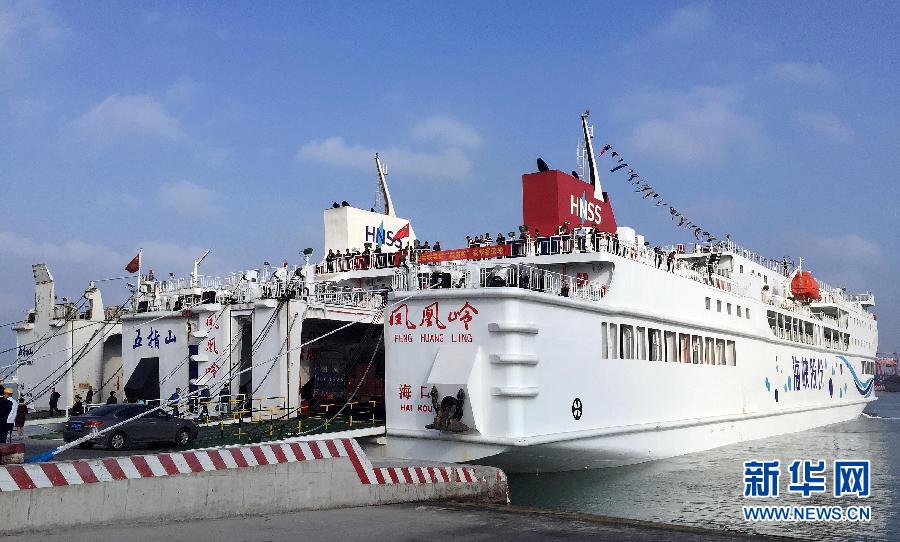 12月15日,“凤凰岭”号客滚轮在海口港装船。当日,“凤凰岭”号客滚轮载着576名乘客开启了海口至广东省徐闻县海安港的首航。据了解,这艘长127米、宽20.50米的“凤凰岭”号轮是迄今为止琼州海峡最大的客滚轮。新华社记者郭程摄