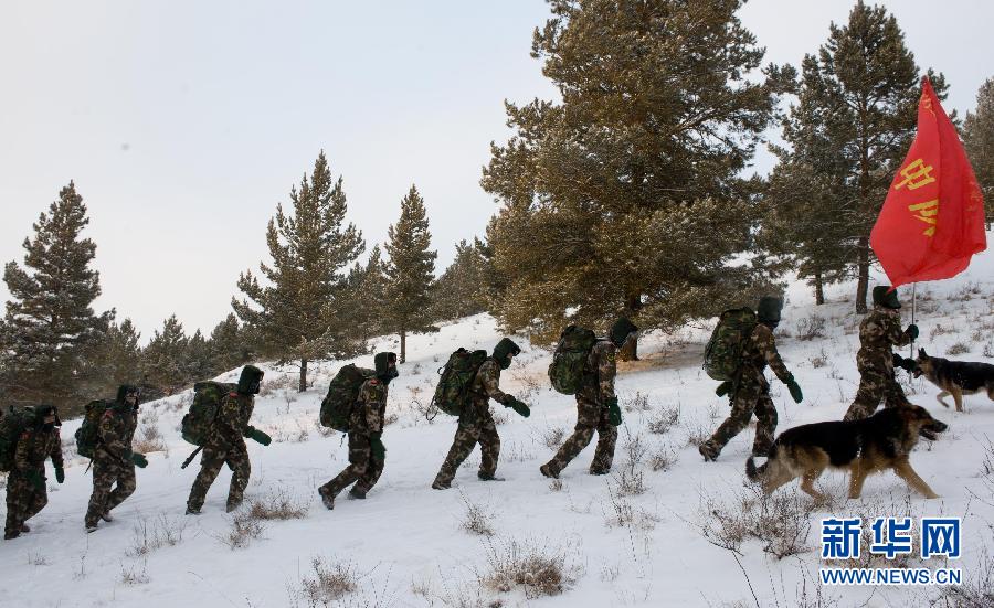 12月15日,森警战士在红花尔基樟子松母树林区进行拉练。