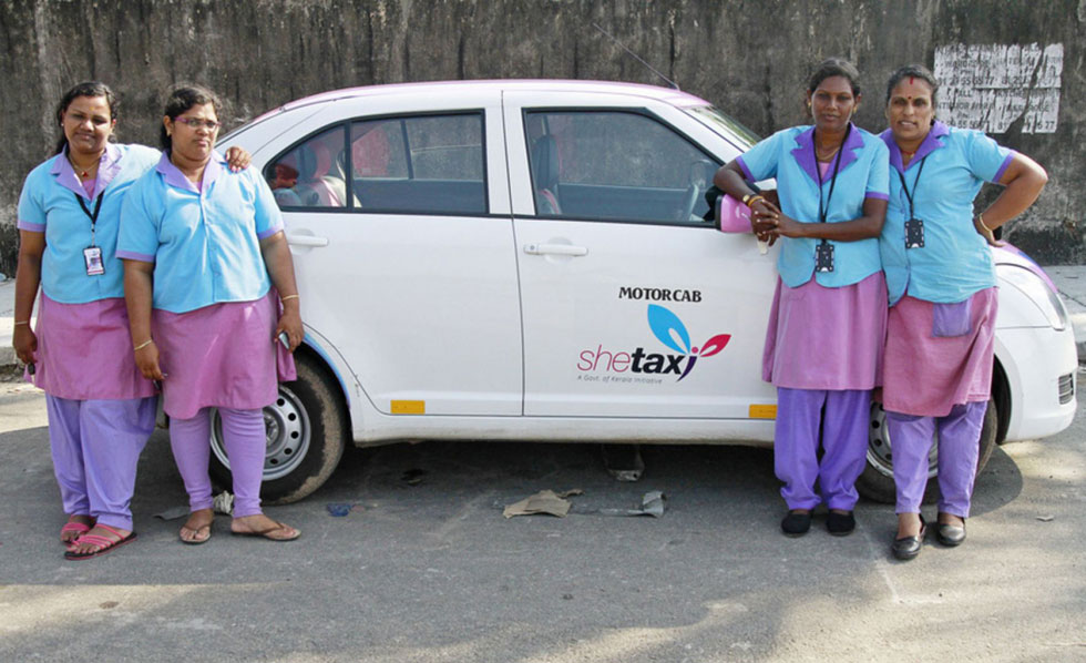 印度南部喀拉拉邦去年底出现一支“She Taxis”车队,这车队的40辆粉色出租车都由女司机驾驶,装备有无线追踪设备和与呼叫中心相连的按钮。