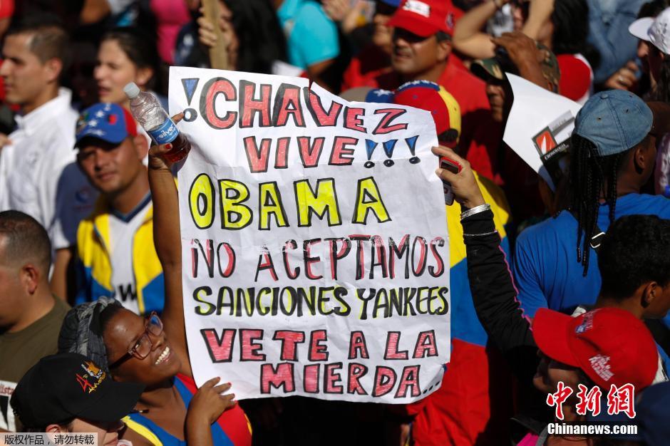 当地时间2014年12月15日,委内瑞拉加拉加斯,数千委内瑞拉民众上街游行反美,总统马杜罗也参加了游行。外媒12日报道,美国国会通过法案,将对“违反抗议者权利”的委内瑞拉官员实施制裁。法案在众议院投票通过,本周早些时候,参议院也已经通过该法案。报道称,在参众两院都通过之后,美国总统奥巴马预料将会签署让法案正式生效。
