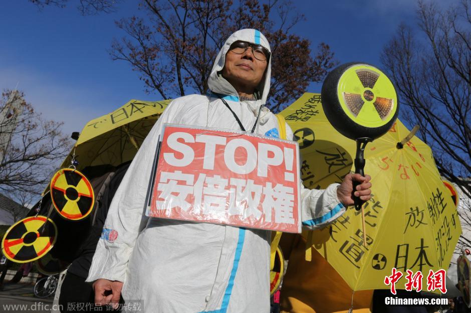 当地时间2014年12月13日,日本东京,民众参加反核示威活动,抗议重启仙台核电站。