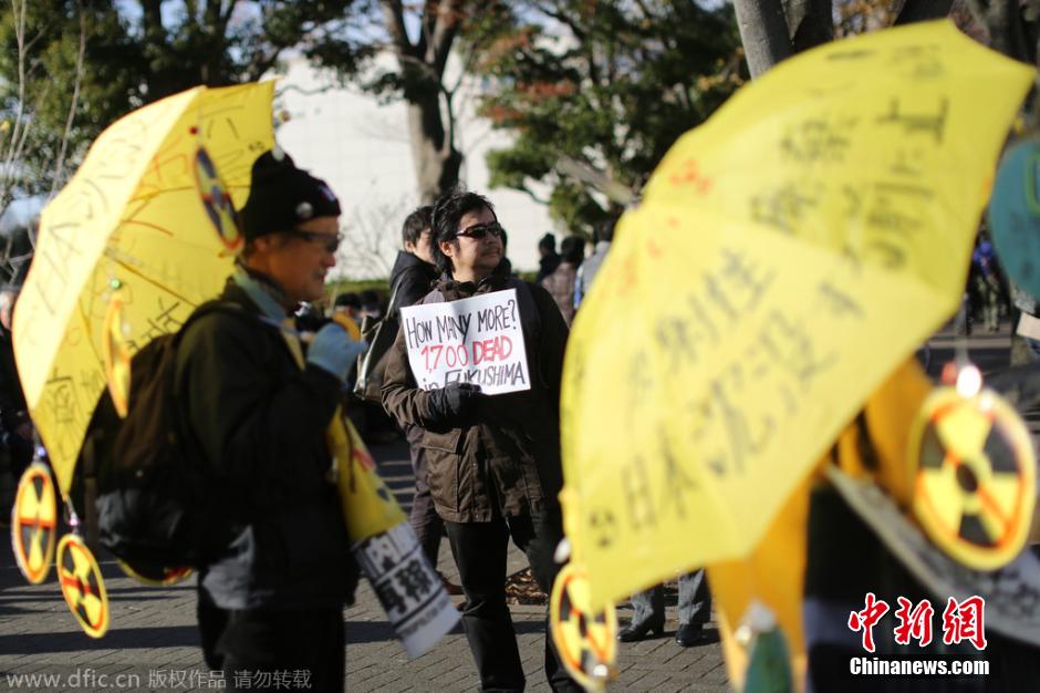 当地时间2014年12月13日,日本东京,民众参加反核示威活动,抗议重启仙台核电站。
