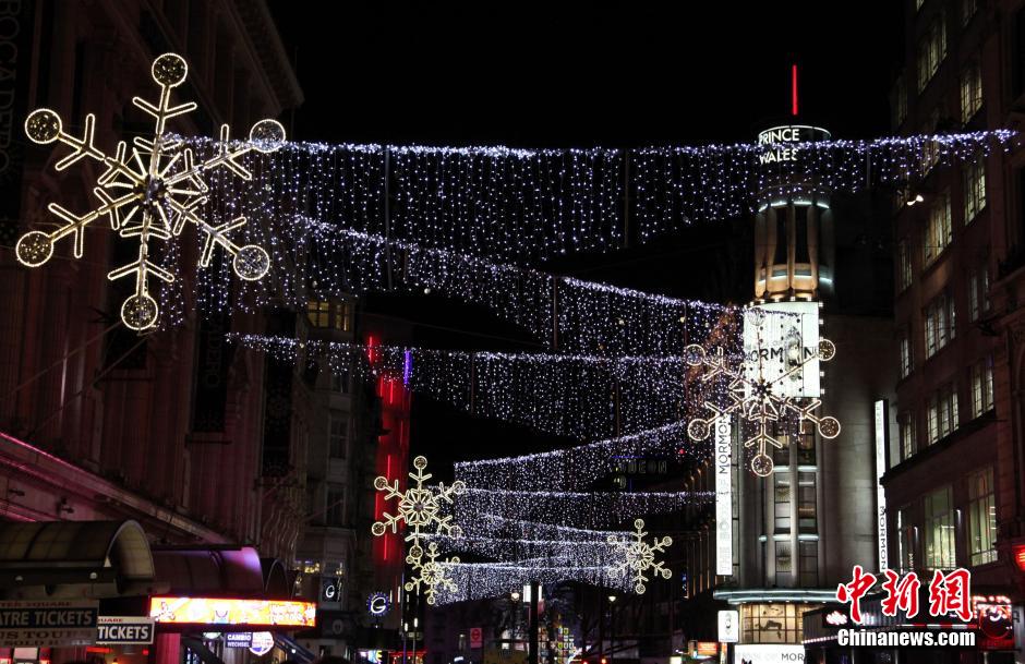 圣诞节即将来临,英国伦敦市中心的各条主要街道都悬挂起色彩斑斓、造型各异的灯饰,让来自世界各地的游客提前感受到浓浓的节日氛围。中新社发 周兆军 摄