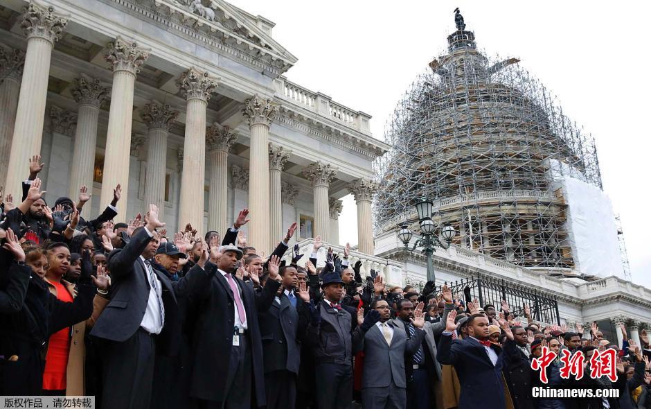 当地时间2014年12月11日,美国华盛顿,美国国会议员和工作人员齐聚国会山集会,抗议近期警察杀害黑人被免于起诉。