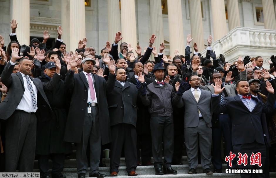 当地时间2014年12月11日,美国华盛顿,美国国会议员和工作人员齐聚国会山集会,抗议近期警察杀害黑人被免于起诉。