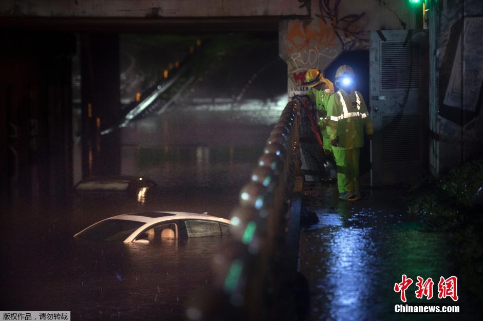 当地时间12月11日,美国加州遇强风暴袭击,车辆遭积水淹没,街道变成“汪洋”,民众选择划船出行。