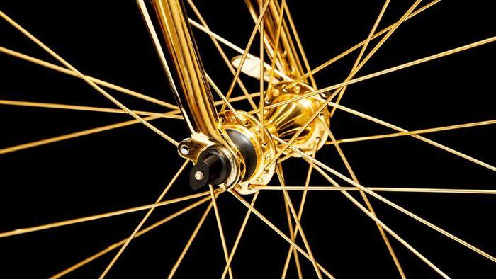 据悉,这辆被改装的自行车之前售价为499英镑。但是该公司将它的每一个零件都镀上了24K金,包括齿轮、车架全部镀金。这辆自行车的身价一下飙升到了25万英镑(约242万人民币)。