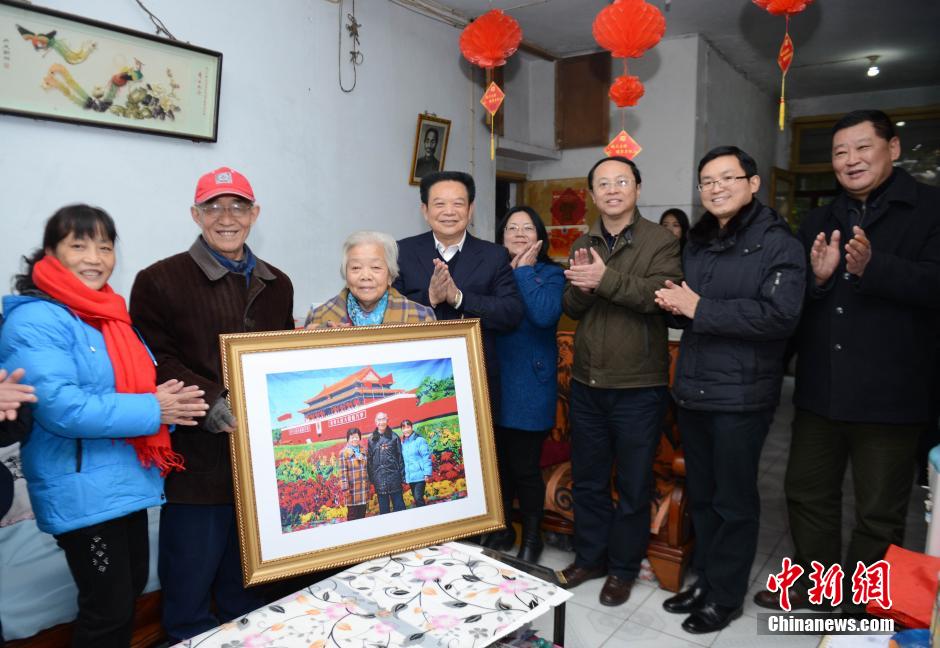 12月14日至16日,四川文艺志愿者深入成都玉林黉门街社区,开展拍摄(赠送)“最美全家福”、手机摄影辅导公开课等活动,扎实开展“深入生活,扎根人民”主题实践活动。图为四川文联党组书记、常务副主席蒋东生等来到吴有学家,并送上其“全家福”照片。中新社发 钟欣 摄