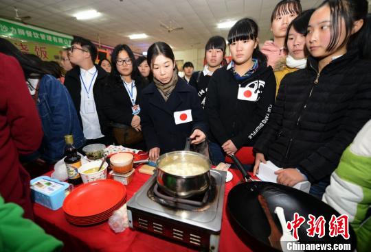 12月16日,首届外教厨艺大赛在湖南外国语职业学院开赛,来自13个国家的20余名在中国任教的外籍教师现场大秀厨艺,让在场的学生用舌尖品味异国文化。