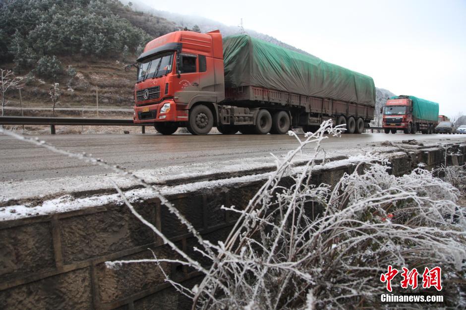 12月16日,渝昆高速公路云南省昭通市昭阳区境内的小凌子口段下雪结凌,路面湿滑。渝昆高速公路云南省昭通市昭阳区位于云贵高原上,每年冬天都会下雪结凌,导致路面湿滑,来往车辆通行困难。该道路是出川入滇的大通道,车流量大,易发交通事故。今年进入12月中旬以来,该路段出现结凌现象。当日发生数起交通事故。目前,该路段已经采取分时限行,晚上8点以后进行封路,第二天根据天气情况适时放行。中新社发 张广玉 摄