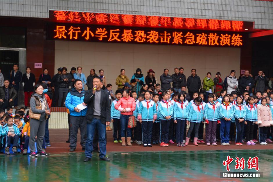 广西小学举行反恐演练 模拟暴恐分子闯校园
