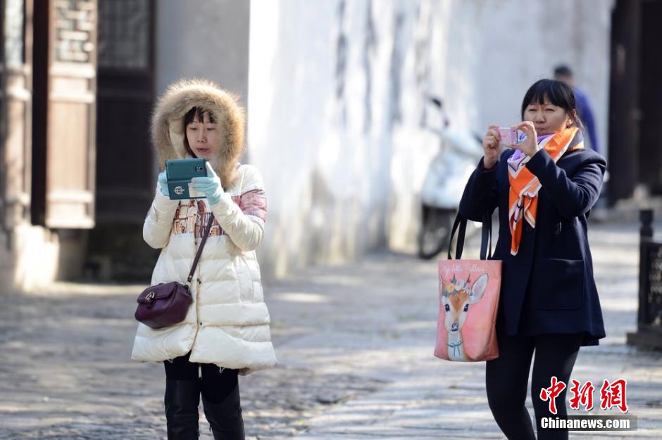 12月16日,古城苏州遭遇大风低温“袭击”,在历史老街平江路上,民众“武装”出行,冒着寒风游玩闲逛,兴致不减。王思哲 摄
