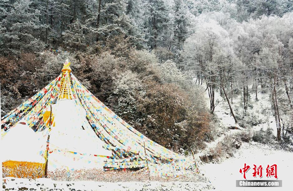 12月16日,一场大雪悄然降临至四川阿坝州理县,大地如同披上一层白纱,千树万树银装素裹,宛如一幅天然的水墨画,呈现出别样的美。图为雪中白塔。万礼志 摄