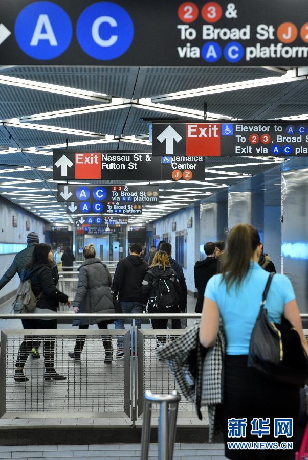 12月16日,在美国纽约曼哈顿,乘客在富尔顿车站换乘。
