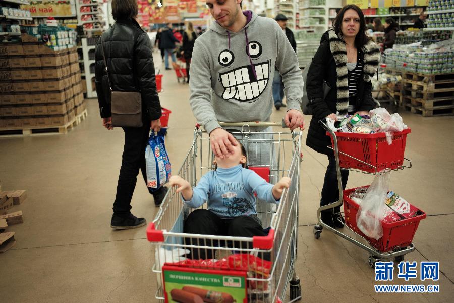 连日来卢布汇价的暴跌以及部分商品的抢购风,给俄罗斯人带来了一股“寒潮”。不过,卢布贬值尚未给莫斯科人生活带来太多实质影响。记者在莫斯科一些商场和超市看到,面粉、蔬菜、肉类、禽蛋和奶制品等百姓生活必需品供应充足,未有抢购。新华社记者戴天放摄