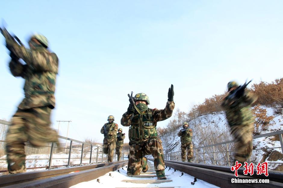 12月17日,黑龙江省穆棱市温度降至-30℃,气象部门发布大风蓝色预警。黑龙江省边防总队牡丹江市边防支队穆棱边防大队机动中队将40名复训新兵拉进山林雪地进行班组战术训练。在生疏复杂地形下,这些“90后”新兵练战术、练指挥、练协同,在山野间进行了战术基础动作、山地搜索、模拟对抗、长途奔袭、基础体能等多个科目训练,充分利用恶劣气候条件锤炼综合作战能力。中新社发 隋启林 摄 图片来源:CNSPHOTO