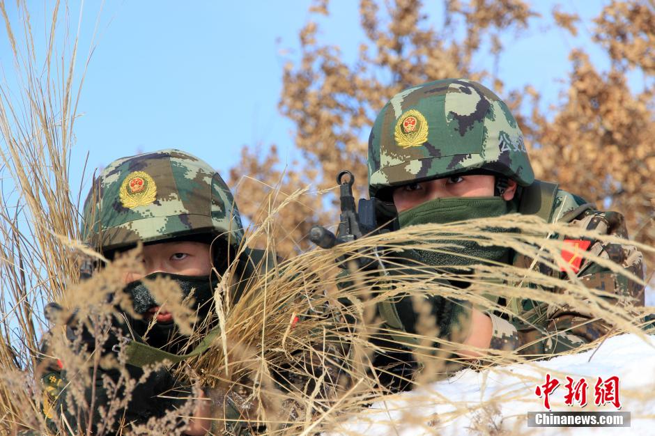 12月17日,黑龙江省穆棱市温度降至-30℃,气象部门发布大风蓝色预警。黑龙江省边防总队牡丹江市边防支队穆棱边防大队机动中队将40名复训新兵拉进山林雪地进行班组战术训练。在生疏复杂地形下,这些“90后”新兵练战术、练指挥、练协同,在山野间进行了战术基础动作、山地搜索、模拟对抗、长途奔袭、基础体能等多个科目训练,充分利用恶劣气候条件锤炼综合作战能力。中新社发 隋启林 摄 图片来源:CNSPHOTO