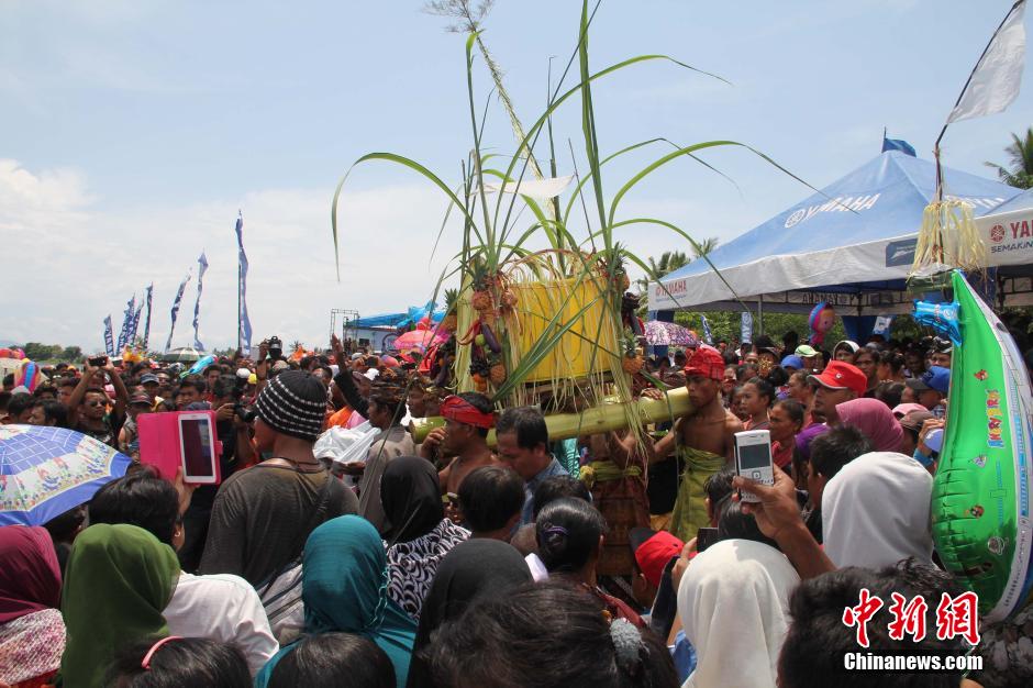 12月17日,印尼龙目岛东龙目县的哥达坂村,一大早就锣鼓喧天,热闹非凡。男女老少身着节日盛装从四面八方如潮水般涌向海边,参与当地一年一度的萨萨克族祭拜海神仪式。顾时宏 摄