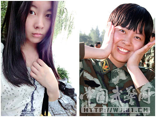 周子艺,光看身材绝对是一个高挑的淑女,但把目光转向她的脸,你就会瞬间觉得这家伙体格肯定健壮的了得。有次训练,周子艺脚崴了,因为比较严重,几天没有和大家一起训练。回到训练场,腿脚不太灵的她便很着急,笨笨的样子非常可爱,于是大家就送她个外号叫“猪头可爱”。周子艺是第一个在新兵连里过生日的战友,因为初来警营,又是18岁的成人礼生日,她被大家感动的一塌糊涂。新兵拉练,她的脚伤还没有好,却硬是坚持和大家一起走完全程,她说:“是战友,就要一起‘战斗’。”