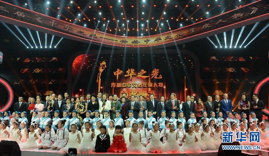 12月19日,获奖人、获奖人代表及颁奖嘉宾等合影。当日,“中华之光——传播中华文化年度人物”颁奖典礼在北京举行。据介绍,“中华之光——传播中华文化年度人物”评选活动由文化部、国务院新闻办、国务院侨办、中国人民对外友好协会等单位共同主办,每年举办一次,每次评选出10名“传播中华文化年度人物”和一个集体奖。新华社记者 陈晔华 摄