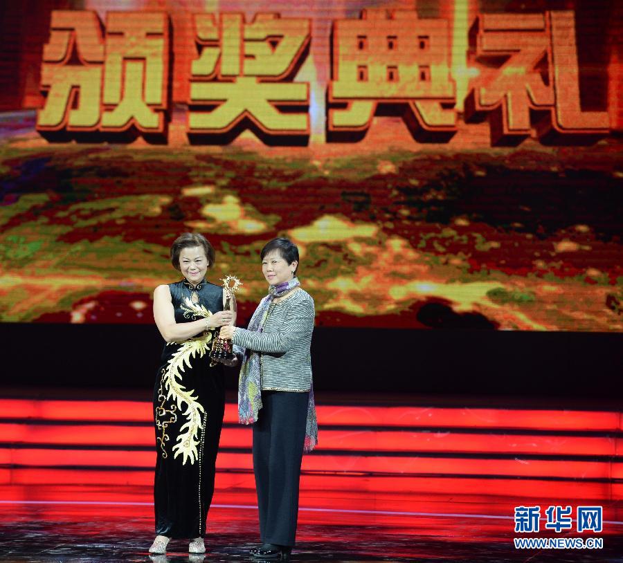 12月19日,中国人民对外友好协会会长李小林(右)为获奖人李少玉颁奖。当日,“中华之光——传播中华文化年度人物”颁奖典礼在北京举行。据介绍,“中华之光——传播中华文化年度人物”评选活动由文化部、国务院新闻办、国务院侨办、中国人民对外友好协会等单位共同主办,每年举办一次,每次评选出10名“传播中华文化年度人物”和一个集体奖。新华社记者 陈晔华 摄