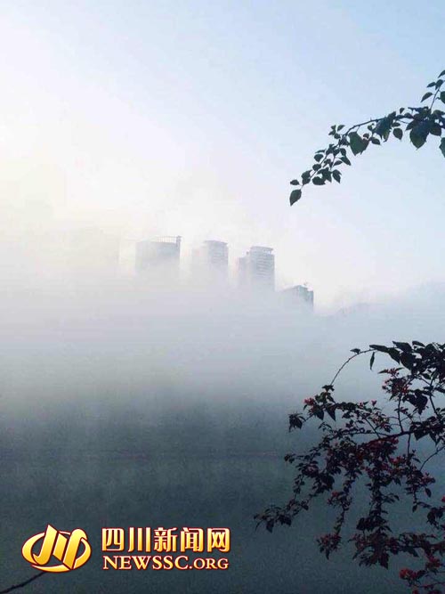 泸州大雾,城市若隐若现。