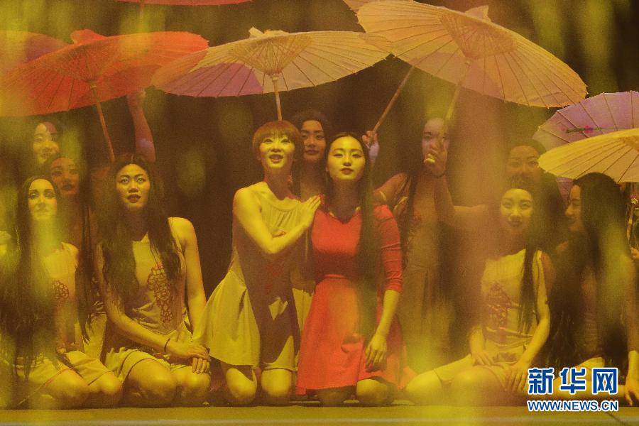 12月19日晚,演员在武汉汉秀剧场进行大型表演“汉秀”的带妆彩排。