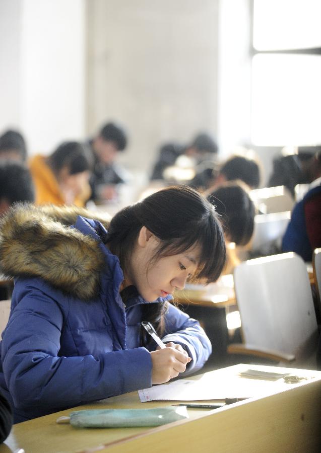 12月20日,辽宁沈阳农业大学考点,考生在进行英语四级考试。当日,全国大学英语四六级考试举行。此次英语四、六级考试继续采用“多题多卷”考试模式,试卷类型由“条形码”区分。 新华社发(张文魁摄)