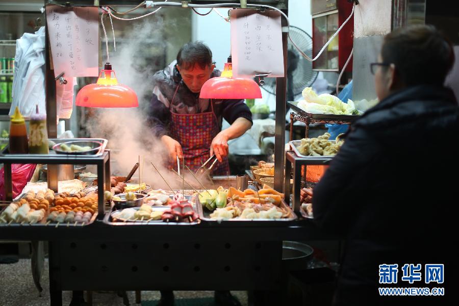 丑时。宵夜。12月19日1时许,澳门街头的一位小吃摊主为宵夜顾客制作麻辣烫。