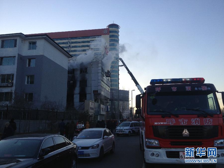 12月22日,消防队员在现场灭火。当日6时许,位于内蒙古自治区首府呼和浩特市昭乌达路与乌兰察布西街交汇处的禾太数码城发生火灾。呼和浩特消防支队出动10余辆消防车灭火,目前清理余火工作还在进行中。新华社记者 邓华 摄