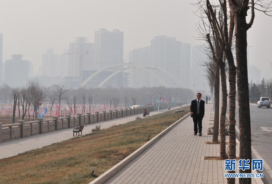 12月22日,在兰州市北滨河路黄河风情线,一名市民外出行走。根据国家环境监测总站12月22日13时更新的最新数据,兰州空气质量指数为153,属中度污染。 新华社记者 范培珅 摄