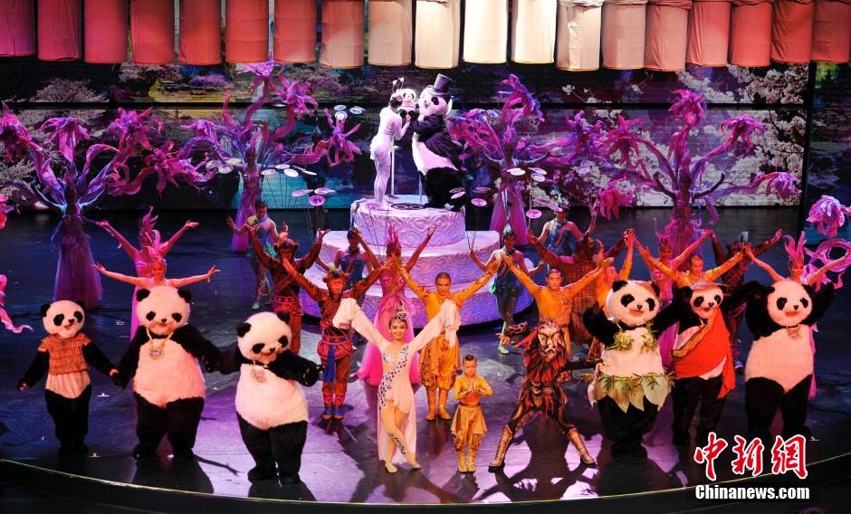 纯中国题材,并由中国艺术家打造的舞台秀“PANDA!”即将在拉斯维加斯宫殿剧院度过一年的演出期,来自河南郑州的少林武术9岁小演员赵郑辉,伴随着“PANDA!”成熟的步伐一步步长大。《PANDA!》百场演出。 中新社发 毛建军 摄