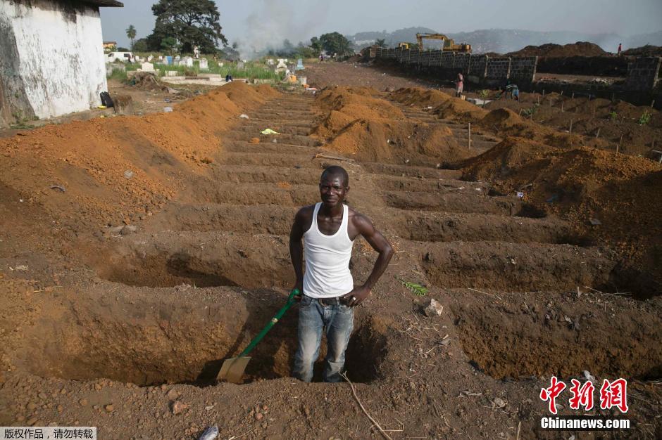 当地时间12月21日,塞拉利昂弗里敦的一名挖墓工人正在挖掘新的公墓,将有40名埃博拉感染者的尸体埋葬在这里。据悉,塞拉利昂感染埃博拉人数急剧上升,在世界上确诊的18603名埃博拉感染者中,塞拉利昂的患者占超过一半。